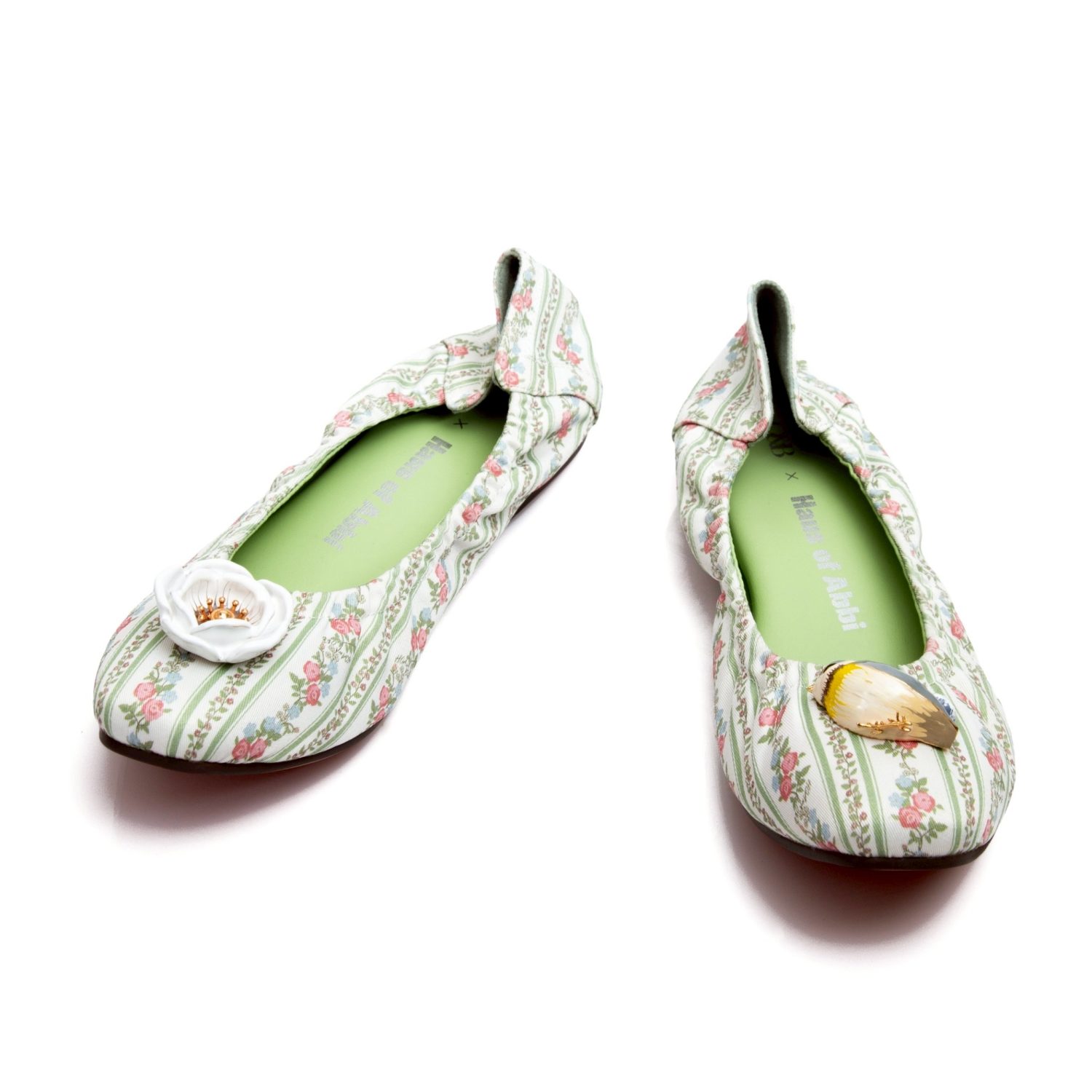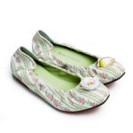 Material: ด้านนอกเป็นผ้าพิมพ์ลาย ส่วนด้านในรองเท้าเป็น Lamp skin (หนังแกะแท้)